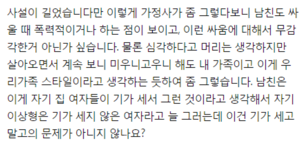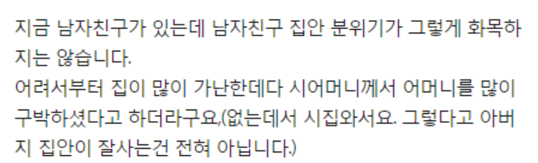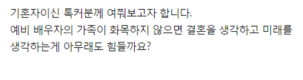 예비 배우자의 가족이 화목하지 않다면 어떻게 생각하시나요 ?